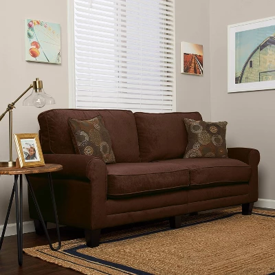 Enjoy functional style and plush, comfortable seating with the Serta Copenhagen 78 Inch Sofa. A great solution for smaller spaces, its compact size and easy tool-free assembly makes it an affordable and stylish seating solution for your apartment, condo or office. Soft rounded arms and pillowy back cushions bring traditional style to your living room, den or game room. Quality hardwood materials deliver strength and stability you can count on, while individually wrapped coils surrounded by high-density foam and poly-fibers provide comfortable seating you can sit back into. Designed to match pieces in the Copenhagen Collection, this Serta sofa can be combined with another sofa, loveseat and accent chair for a completely coordinated look.
