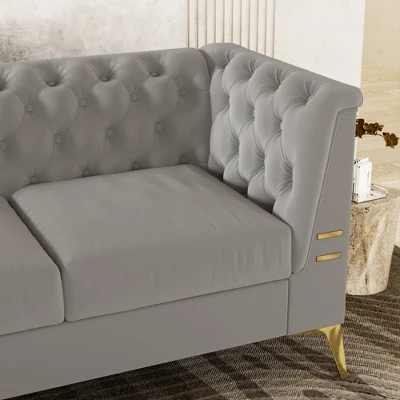 82.7″ Chesterfield Sofa, Velvet Upholstered 3 Seater Sofa Couch-ModernLuxe