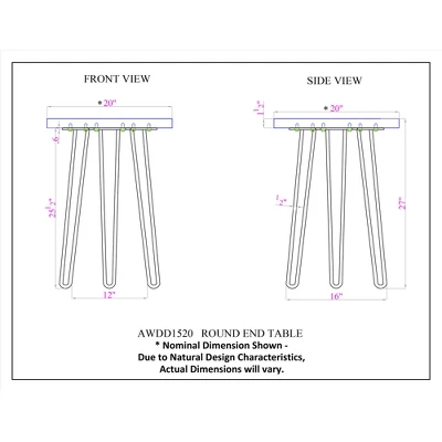 Mid-century meets Modern Industrial with these Natural Live Edge table tops and hairpin metal legs. Each tabletop is unique; no two tops will be exactly alike. Constructed of natural acacia wood. Each of our live edge products includes nylon floor protectors. The knots and cracks add to the wood’s character. A clear natural finish enhances the beautiful features in each piece of wood. The Round Accent Table offers 2 levels of pure beauty. Place your favorite lamp on top and add a vase, plant, or books on the lower shelf to complete this beautiful design.