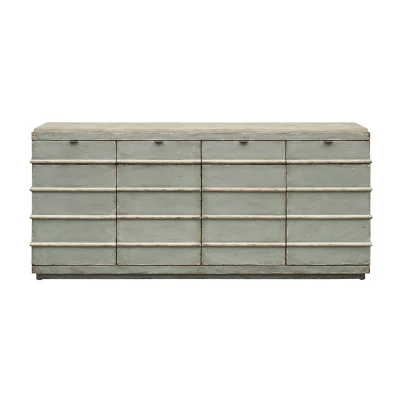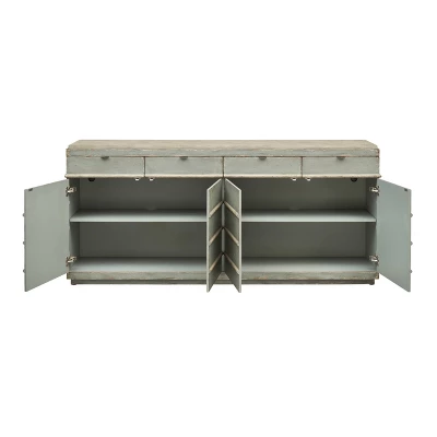 Need a statement piece for a dining or living room? Look no further than this Monaco two-toned credenza featuring four drawers and ample cabinet space to hold all of your dinnerware or electronics and consoles. This rustic plank-style piece makes a great finishing touch for any room while offering long-lasting durability you can trust.
