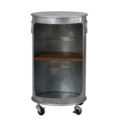 The tin-can-style Church St Metal Side Table from StyleCraft is just what you’ve been looking for to bring farmhouse style to your decor. With thin handles on the side and casters on the bottom, you can roll this table anywhere you need to switch up your decor at a moment’s notice. The hollowed-out metal reveals a single wooden shelf for displaying potted plants, books and more. Make it your own with how and where you display it. Due to lighting and monitor differences, actual colors and finishes may vary slightly from what appears online.