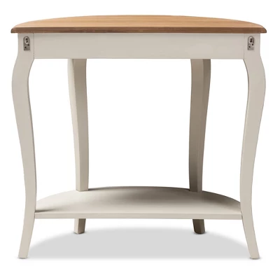 The Cordelia console table will add a charming, romantic look to your home. The country cottage farmhouse-inspired design emphasizes a fresh, two-tone look. The Cordelia’s Bayur wood frame is built to last, with a whitewash finish. The tabletop complements the frame with a natural finish. The table features an open shelf space, connected to four sabre style legs. The Cordelia, with its delicate, subtly carved face, can be easily coordinated with a wide range of looks, from coastal, French, provincial, and rustic aesthetics. The shelf space can display decor or serve as additional storage in your entryway, hallway, or mudroom. Made in Indonesia, the Cordelia requires assembly. Dimensions: 29.53″ High x 31.5″ Wide x 15.75″ Deep; Shelf: 19.29″ High x 27.95″ Wide x 13.98″ Deep; Legs: 5.2″ High