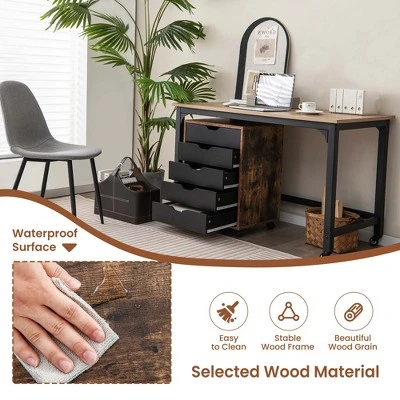 Whether you’re looking to keep things organized or just clear up your home, our 5 drawer chest can meet your needs perfectly. With 5 storage drawers and a spacious tabletop, our storage drawer organizer cart can give you a great amount of space and flexibility. Made of high-quality board, the 5 drawer chest is designed for solid construction. Further, these flexible wheels feature a locking system that works on your requirement to restrict the movement of the cart upon your need. The slim design can make it easy to put the storage cabinet under the desk for space saving. An elegant and multifunctional mobile cabinet with simple lines makes it a great decoration in your living room, bedroom, or somewhere else!