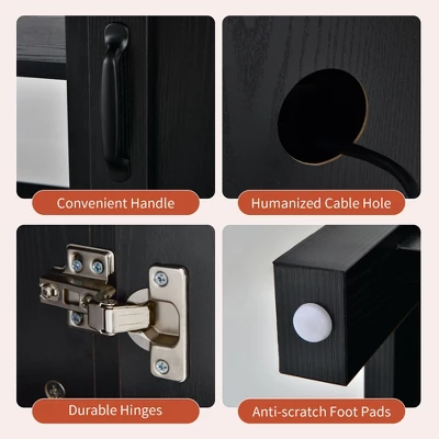 - Humanized Design: 4 cable management holes on the back of the TV stand make it easier to organize the wires and keep your room clutter-free. Moreover, each door has a metal handle for convenient opening and closing the cabinet. And the waterproof surface is easy to clean.