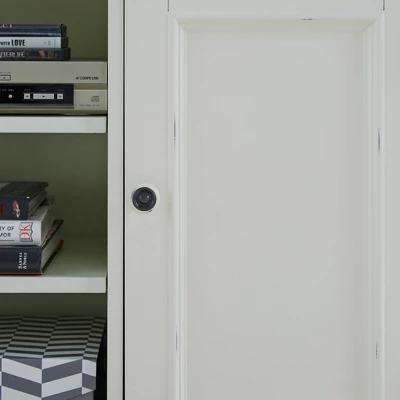 - Two adjustable shelves behind each door allows you to customize your storage.