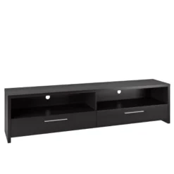 Your next binge session or family movie night will be much more enjoyable when you place your big screen on this barn door style TV stand or mount it on the wall above. This versatile media console serves as both an entertainment center and as extra storage and fits up to a 65″ TV. An adjustable middle shelf holds up to 30 lbs. static weight capacity. Four cable management ports help keep wires and cables neatly out of sight, and away from little hands. Built from ultra-strong laminate and featuring metal screw reinforcements, this console will accommodate up to 200 lbs. static weight capacity. Step-by-step illustrated instructions are included and assembly takes less than an hour. Water followed by a dry cloth will keep this unit looking new. Whether you’re an apartment dweller or suburbanite, industrial to farmhouse, this 59″ TV stand will help keep you organized and on-trend. Additional Features: Shelf Size: 22.75″W x 12.75″D x 8-11″H; Storage Size: 15.5″W x 13.75″D x 19.25″H, 4 Cable Management Cutouts control cords and wires, Fixed Plastic Floor Glides protect hard flooring surfaces, 1 Hour Assembly Time with Step-by-Step Illustrated Instructions, Multipurpose TV stand ideal for living room, family room, entryway, or bedroom use