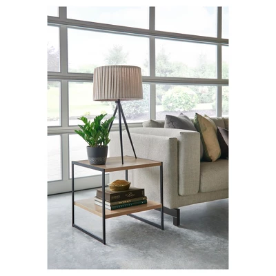 Closet Maid’s Mixed Material End Table features two open-space shelves, perfect for standing a sofa-side lamp, storing and displaying your favorite books and more, or as a sturdy and spacious printer table for your office. Available in two laminate wood finishes on a black steel frame, this unit offers understated industrial styling with a sturdy 75lb weight capacity for your living room or office. Complete the look with other pieces from the Mixed Material collection, including desk, ladder bookshelf, and entertainment table.