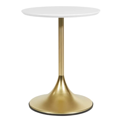 Place the flower side table from OSP Home Furnishings® next to your sofa or favorite chair and enjoy its beauty and functionality. Crafted with a weighted metal base and paired with a matte white-finished top, this modern side table delivers plenty of personality. This is a great addition to your living room or bedroom.