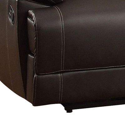 Leather Double Reclining Sofa With Drop Down Cup Holders Brown – Benzara