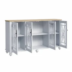 Finished in a rich brown, this vintage style floor cabinet measures 28β tall and 31.25β wide, making it the perfect storage solution for extra household items. Mount a sunburst mirror and display books, clocks or lavender for a French-inspired vignette in the hallway. The four-door cabinet can also store china and silverware for a traditional, elegant style dining room. A glossy finish and subtle gold accents highlight the ornamental designs and intricate crown molding on the cabinetβs doors. Each door features a dusty pink peony motif.