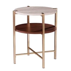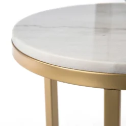 Amelia Round End Table With Faux Marble Top Brass – Aiden Lane