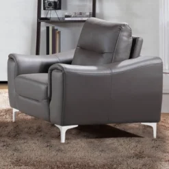 Upgrade your home or apartment with this modern inspired gray stationary leather armchair by AC Pacific. The sleek lines, smooth curves, and supportive back provide a modern element to this perfect 3-piece stationary seating collection. This sofa features softly curved padded arms decorative stitching and a cover that consists of a soft, leather gel treated fabric that has the hand of high-end Italian leather.