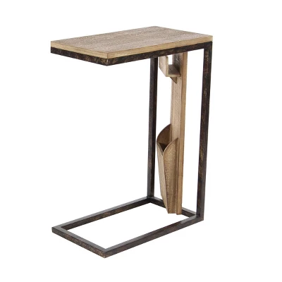 - â˘Compact side sofa table features a C-shaped structure with slender metal frames, and a modular side wooden panel with storage compartments for convenient display