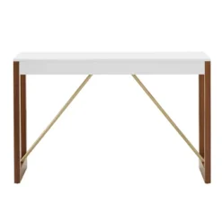 LuxenHome Farmhouse Wood And Metal 2-Drawer 2-Door Storage Cabinet.