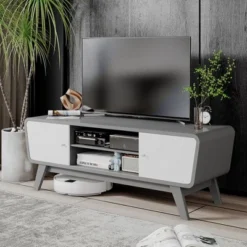 Tangkula Mid Century TV Stand For TVs Up To 55″ Media Console Table Sliding Door