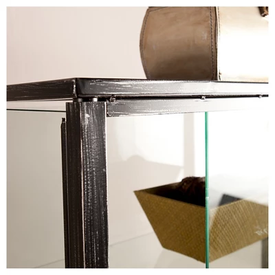 Elegantly display your favorite items with the Aiden Lane Storage Cabinet with Sliding Doors Black. A distressed finish gives your design a hint of rustic flair, while a sleek glass cabinet safely encloses display pieces behind two sliding doors. Add this tall curio cabinet to your living space to show off modern dΓ©cor and family photos, or place in your home office to upgrade your collectibles and souvenirs. Put the finishing touch on your home design with this glass-door display cabinet.