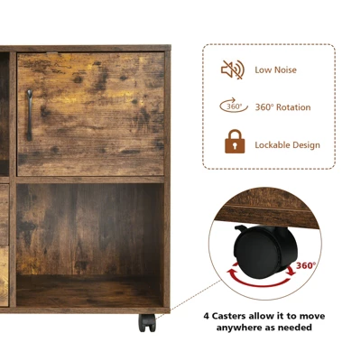 - Versatile & Flexible Features: Equipped with four 360° swiveling casters (2 of which are lockable), the wood mobile file cabinet can be placed everywhere around your space. Whatâs more, there is almost no noise during the rotation for better use experience.