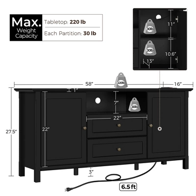 - 【Generous Storage】The 5 compartments and 2 drawers of this 58″/ 147 cm long media console break its application boundary. Beyond housing TV, electronics in the living room, its spacious top and storage area make this media console table perfect in other rooms to house lamps, soundboxes, fans, or gather articles