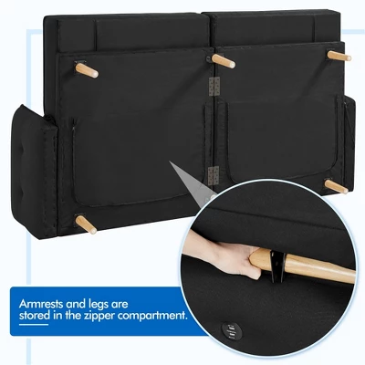 Yaheetech Convertible Sofa Bed Tufted Futon Couch With USB Ports For Living Room