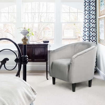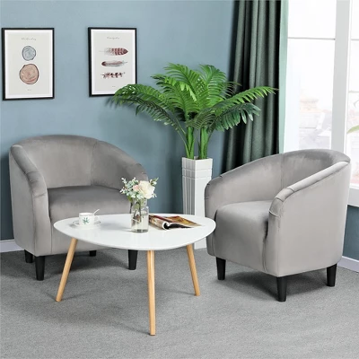 - The contemporary with traditional curved design merge for an elegant look, this pair of velvet club chairs are a stylish addition to any seating ensemble. Constructed of a manufactured wood frame, soft-to-touch velvet cover and medium-firm foam seat, this pair of barrel chairs stand out from others for their quality and comfort. With the ability to hold up to 300lb, they can provide you with a strong and durable seat.